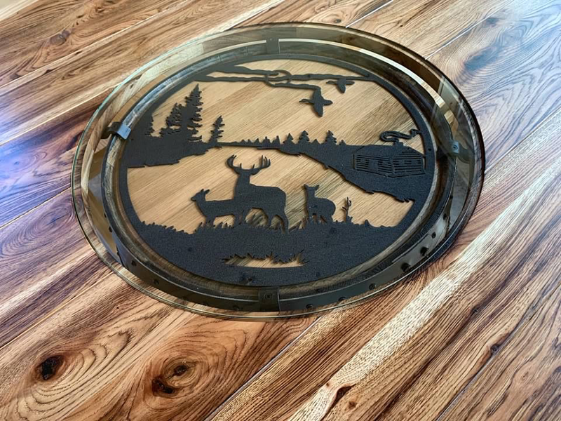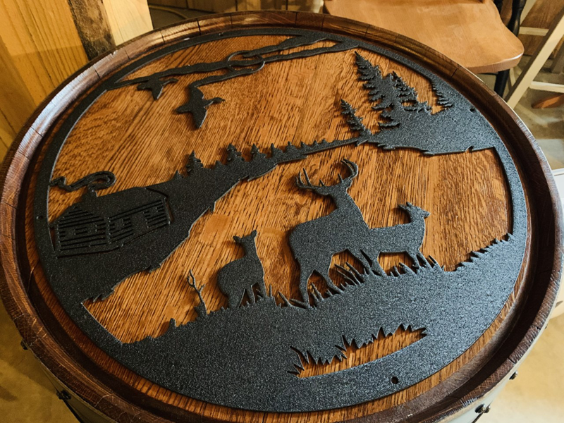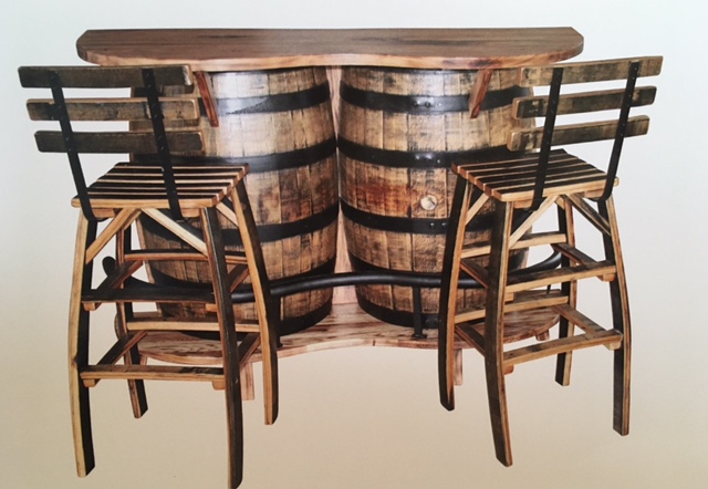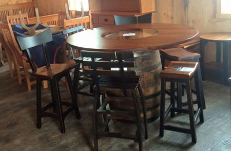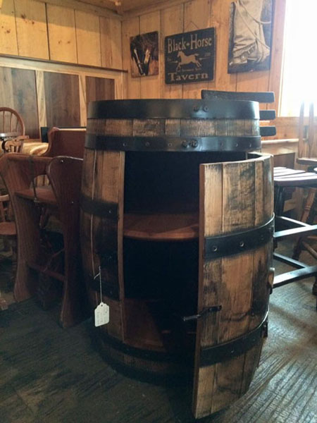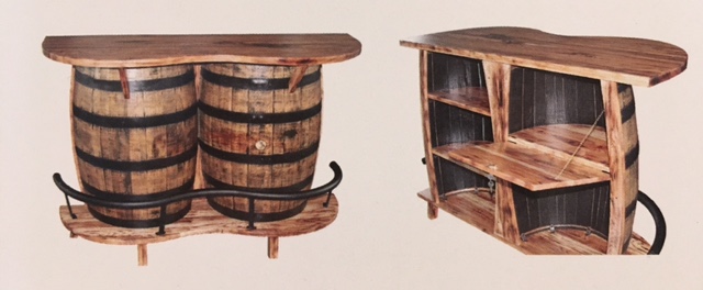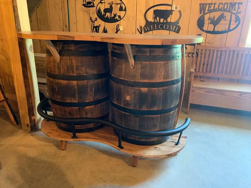 Whiskey Barrel Bar Shown in Hickory (Also available in rustic burnt hickory and quarter sawn oak)