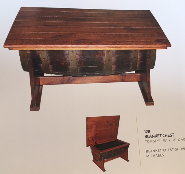 Whiskey Barrel Blanket Chest, available in Hickory, Burnt Hickory and Quarter Sawn Oak