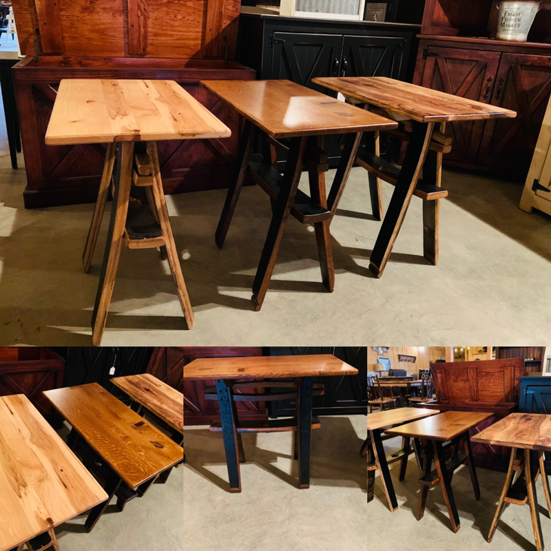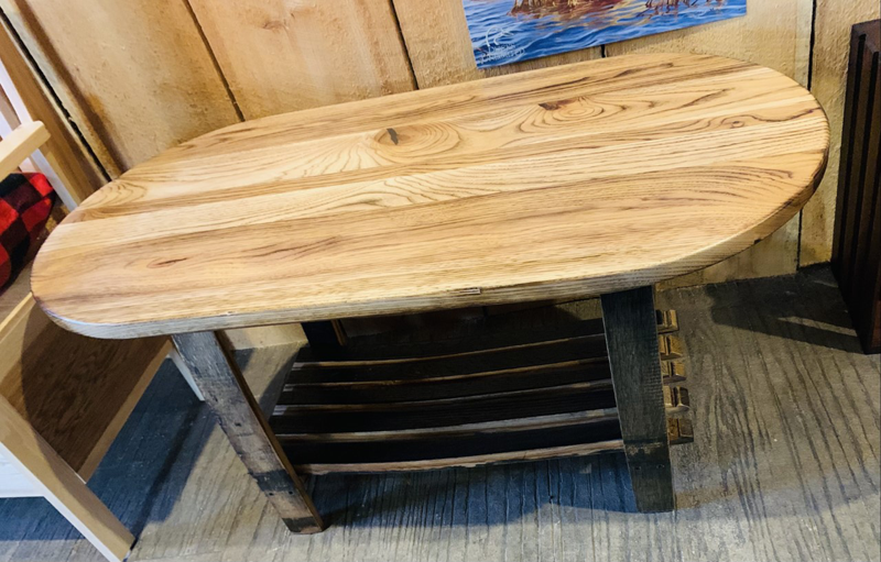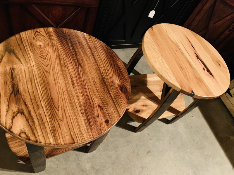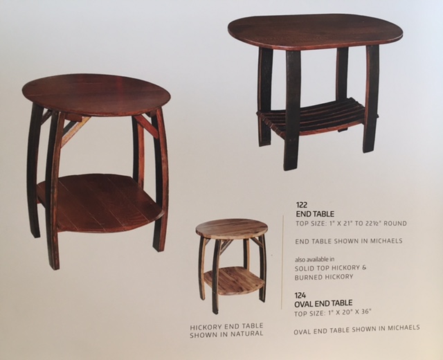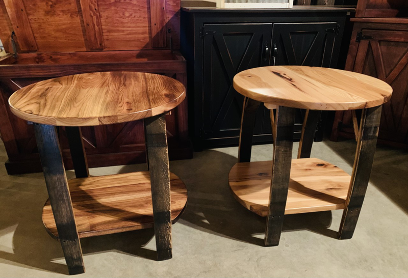 Whiskey Barrel End Tables Round & Oval available in Hickory, Burnt Hickory and Quarter Sawn Oak