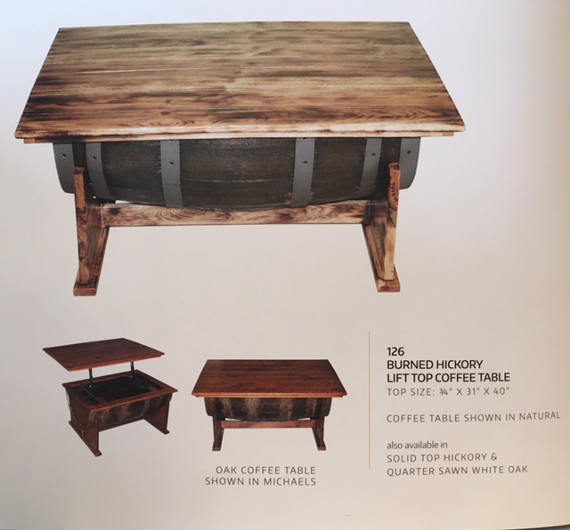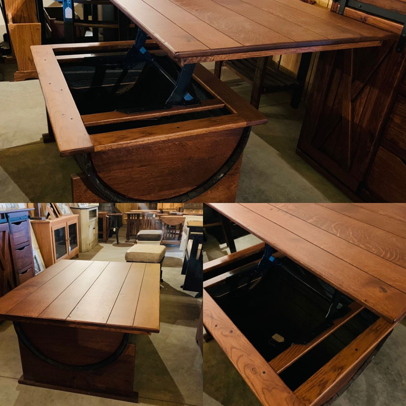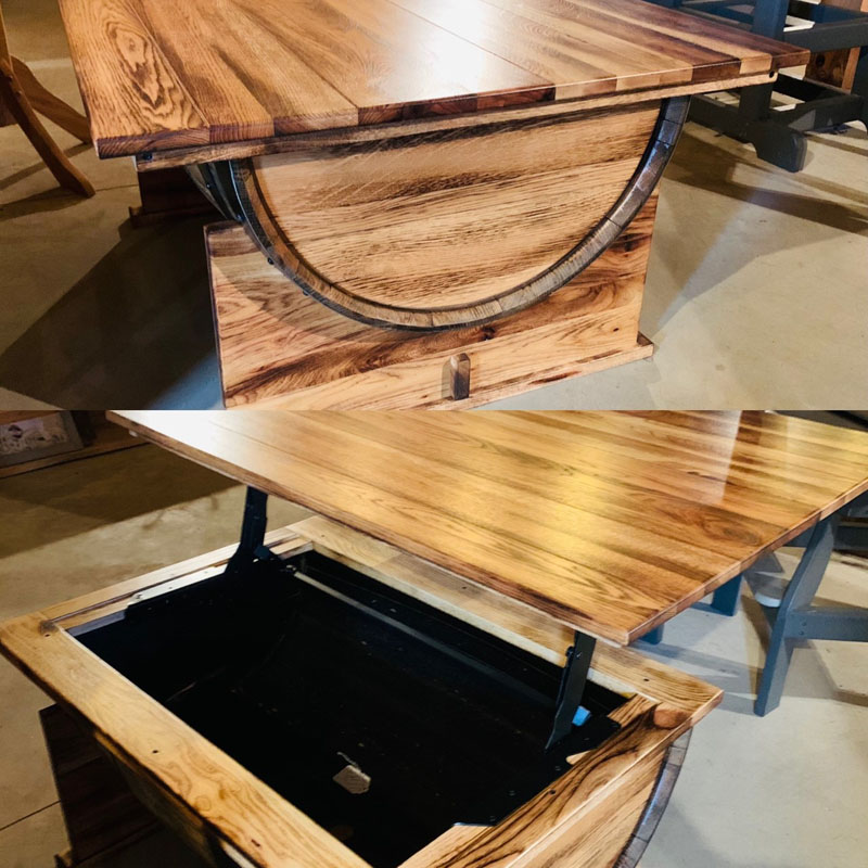 Whiskey Barrel Lift Top Coffee Table w Storage in the Barrel