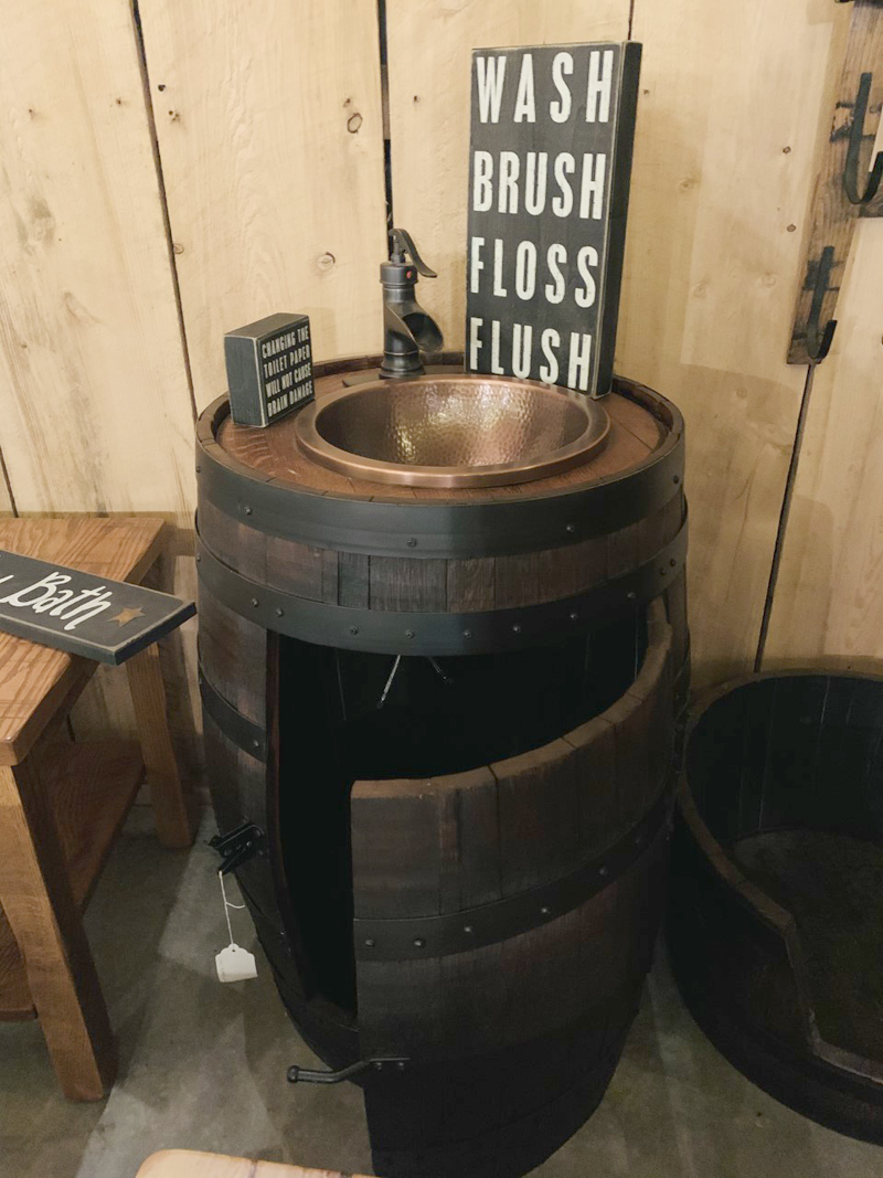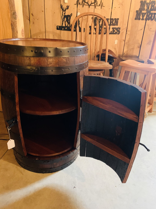 Whiskey Barrel Bar Shown in Hickory (Also available