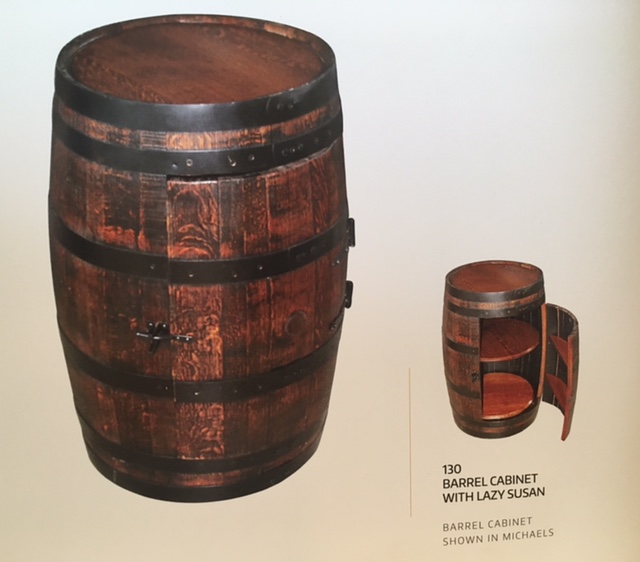 Whiskey Barrel Lazy Susan with Two Lazy Susan Shelves in the Barrel