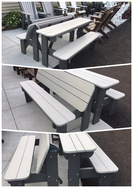 Multi use Bench/Picnic Table in Light & Dark Gray This Bench/Picnic Table would be great for extra seating that can also be used as a table, by a pool, on a porch, deck, overlooking a pond, lake or river, or even out on your dock.