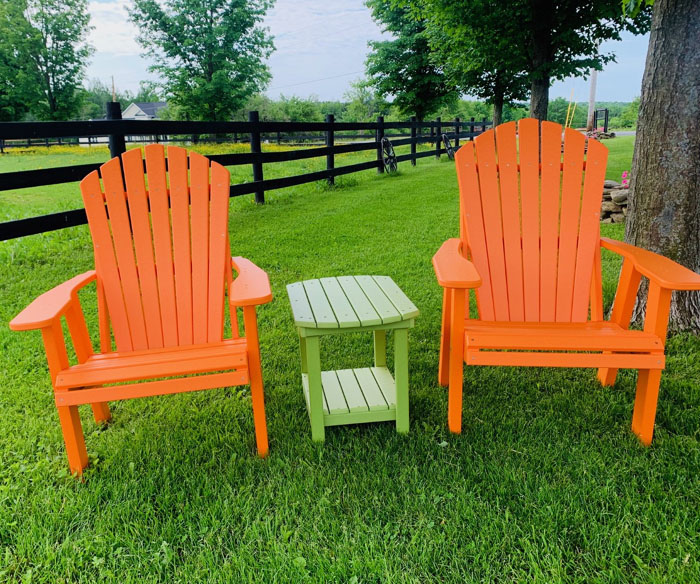 Bright Orange Adirondack Chairs w Lime Green End Table